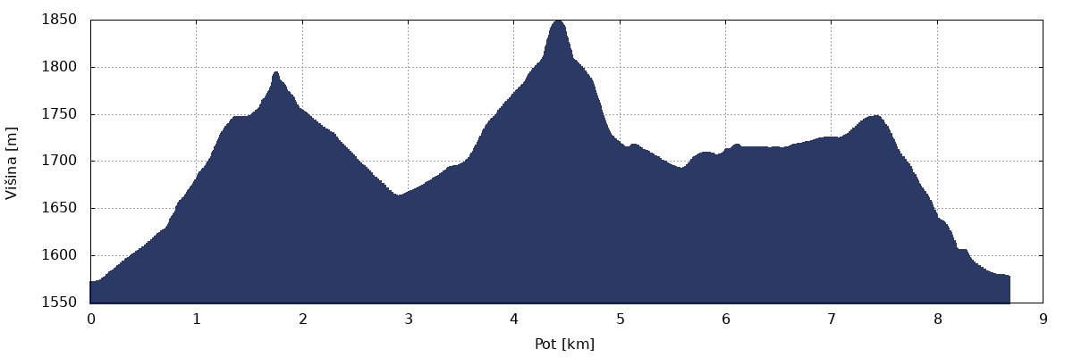 Najvišja točka: 1849 m (47.3019550089, 13.2585447282)